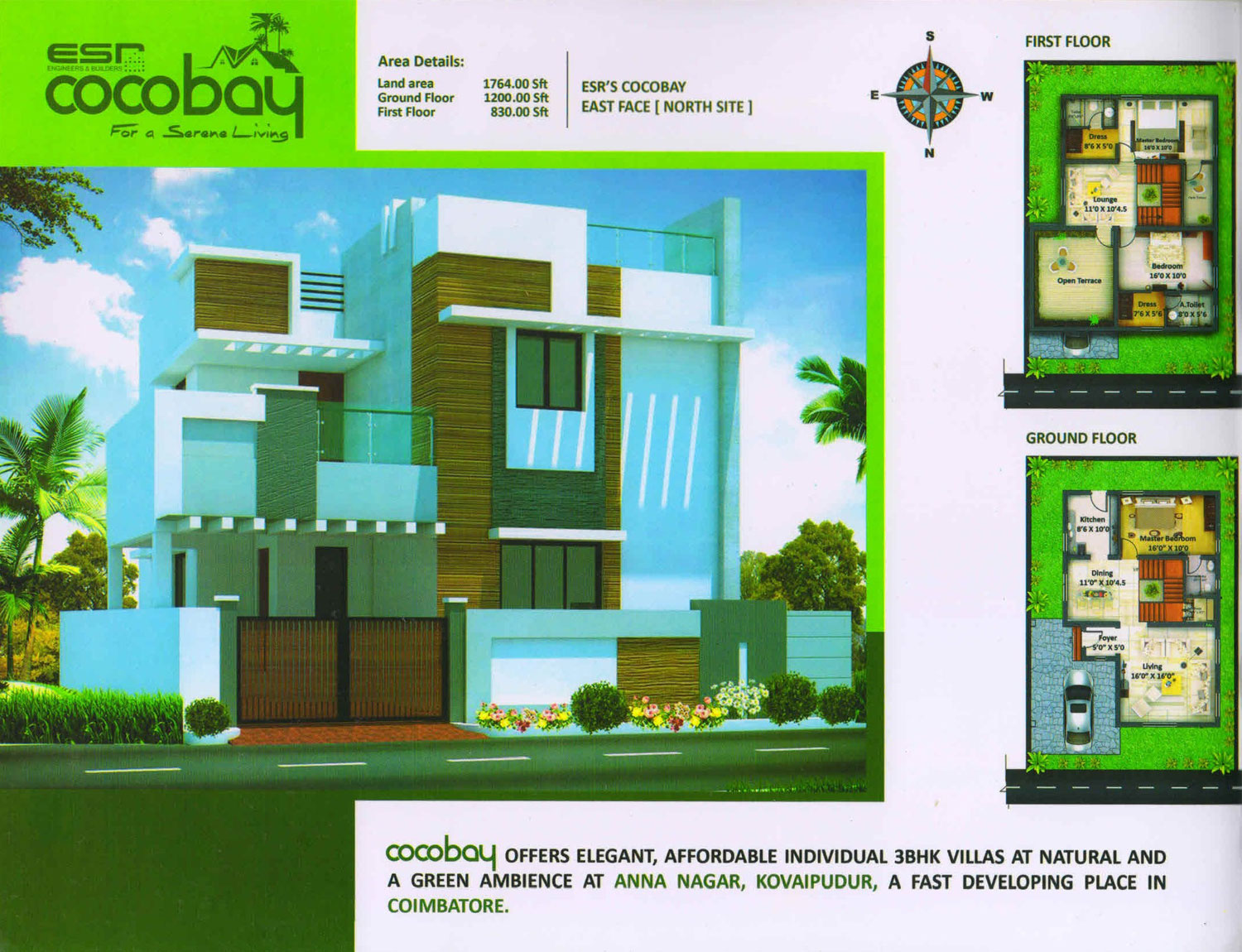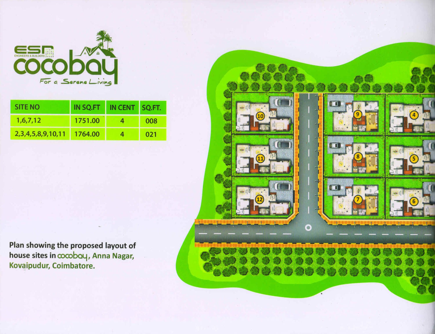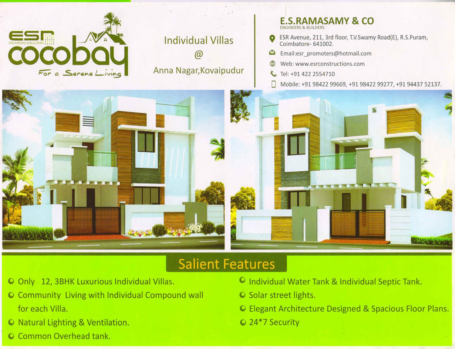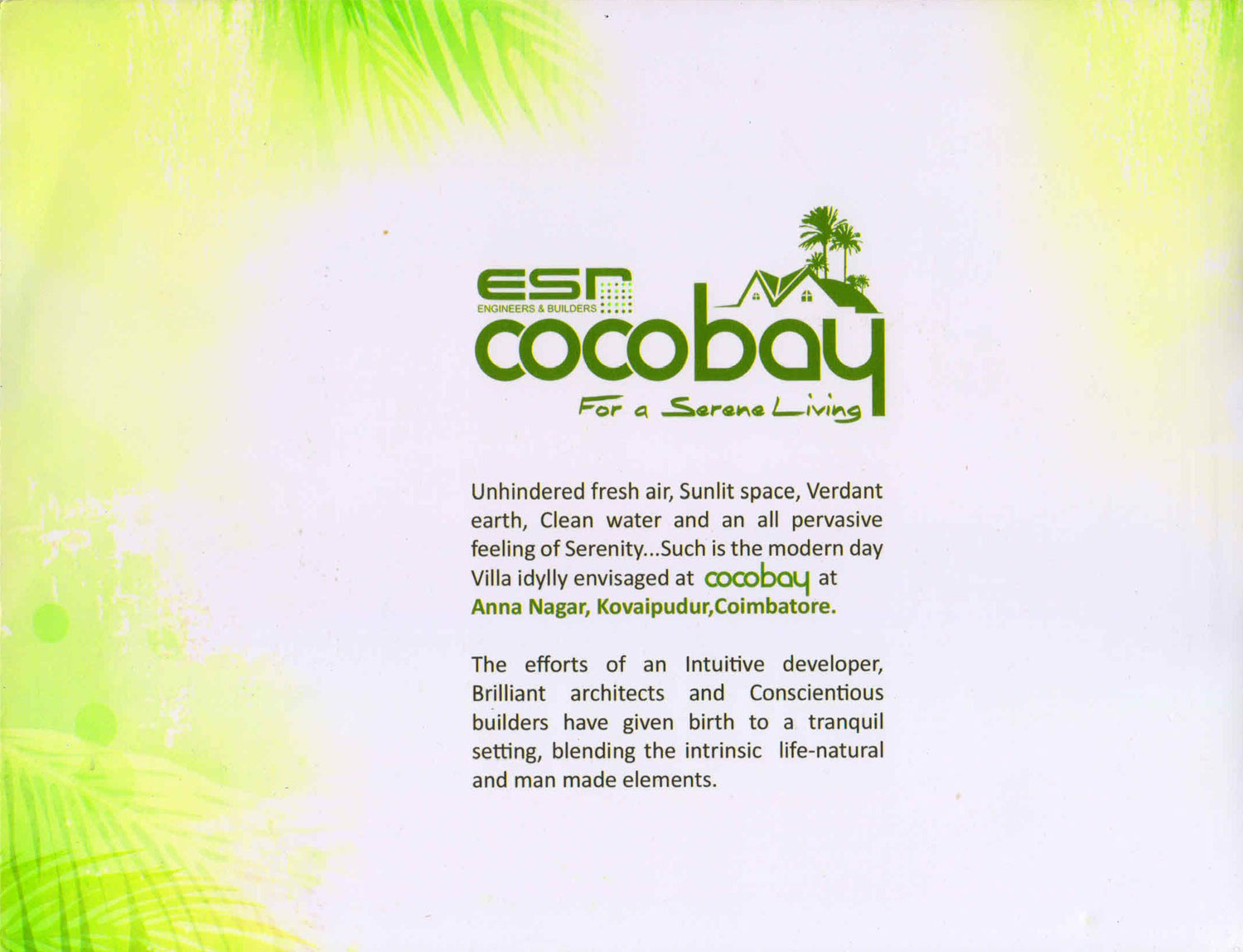 ESR COCOBAY offers elegant , affordable 12 Individual 3BHK villas at natural and a green ambience at Anna Nagar, Kovaipudur, a fast developing place at Coimbatore.